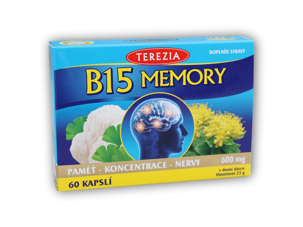 Čekají vás zkoušky nebo pohovor? Máte psychicky náročnou práci, ve které se každý den musíte správně rozhodnout a navíc si všechno pamatovat? Doplněk stravy B15 MEMORY je tu právě pro vás. Obsahuje totiž legendární houbu hericium, pivovarské kvasnice (obsahují kyselinu pangaminovou), ginkgo, kurkumu, rozchodnici a bakopu drobnolistou. Proč tato kombinace? Ginkgo napomáhá lepší mikrocirkulaci krve ve všech částech mozku a podporuje duševní rovnováhu. Bakopa podporuje koncentraci, paměť a schopnost učit se. Rhodiola stimuluje vnímání a pomáhá zahnat únavu. B15 memory je tak ideálním pomocníkem pro studenty, managery, seniory, ale také maminky na mateřské, které musejí zvládat miliony věcí najednou a přitom na nic nezapomenout.