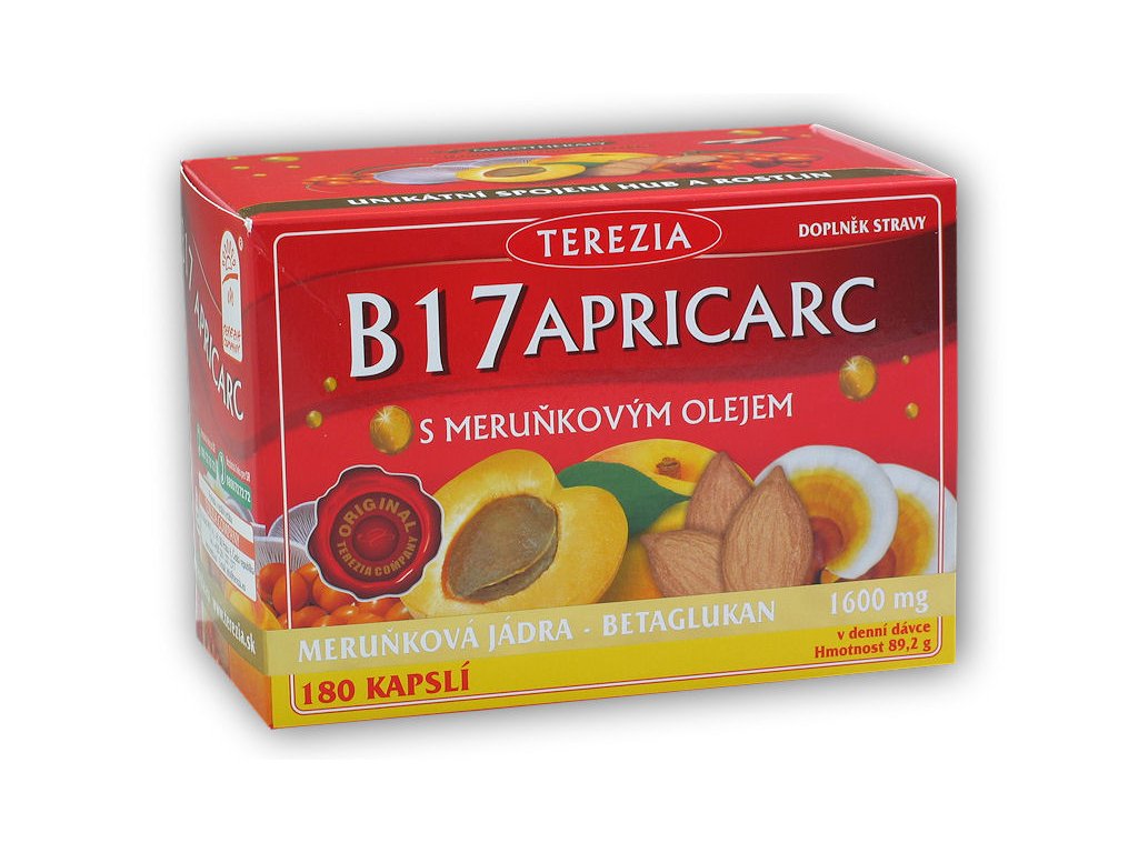 Unikátní kombinace 4 přírodních složek v 1 kapsli (meruňková jádra, reishi, rakytník a hlíva), která podpoří organizmus i v těch nejtěžších chvílích. Meruňková jádra obsahují látku vitamin B17 známou ve světě jako laetril (amygdalin). Tato látka je právem středem zájmu vědců po celém světě. Reishi a rakytník podporují přirozenou obranyschopnost organizmu. Obsažená hlíva pochází z certifikovaných pěstíren v ČR a má deklarovaný obsah betaglukanů. K výrobě se totiž používají speciální kmeny hlívy. B17 APRICARC je vyráběn bez dalších chemických příměsí a konzervačních látek.