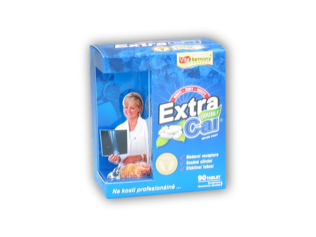 ExtraCal® Double je zesílenou kombinací vápníku, hořčíku, křemíku, jódu a vitaminu D. Vápník přispívá k udržení normálního stavu kostí, zubů a funkce svalů. Vitamin D má vliv na hladinu vápníku v krvi, přispívá k jeho vstřebávání a k normální funkci imunitního systému. Hořčík snižuje míru únavy a vyčerpání, dále napomáhá k psychické a nervové činnosti. Jód přispívá k normální činnosti štítné žlázy a její produkci hormonů.